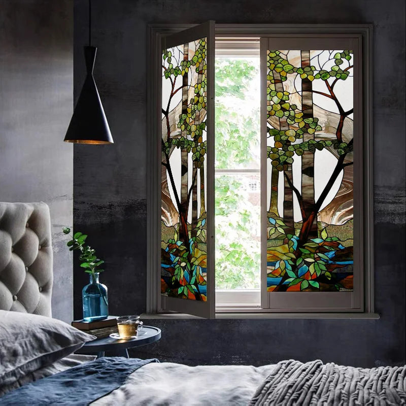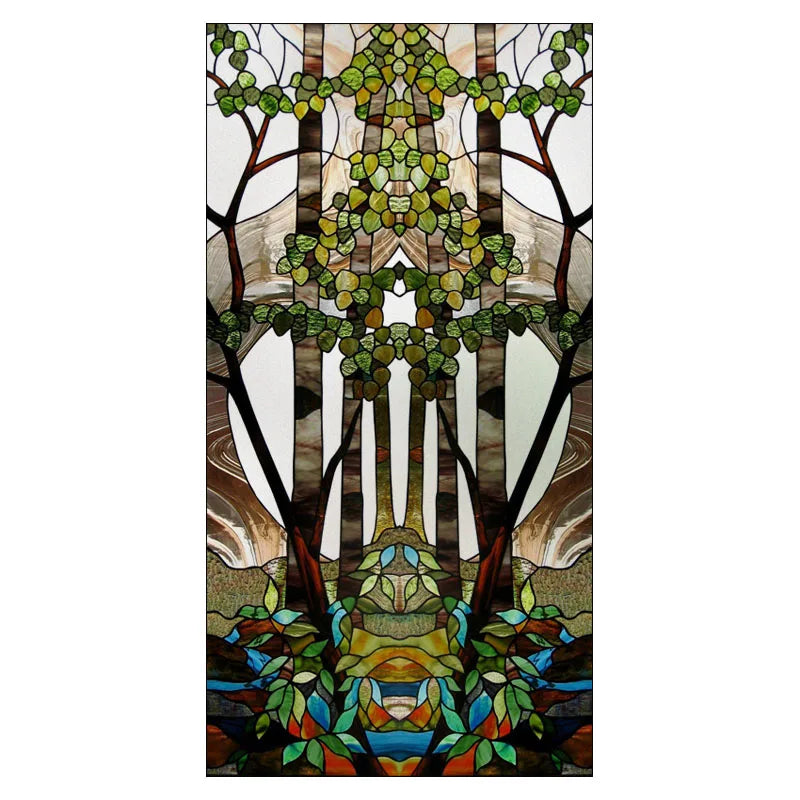 Colored Frosted Window Film, Stained Glass Door Sticker,Self Adhesive, Static Cling ,Tree, Custom Size, Church Style Tree