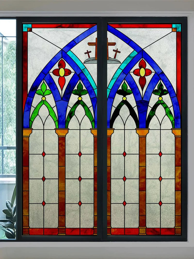Custom Frosted Stained Glass Window Film,PVC Static Cling Films,Cross Church Decor Foil Stickers