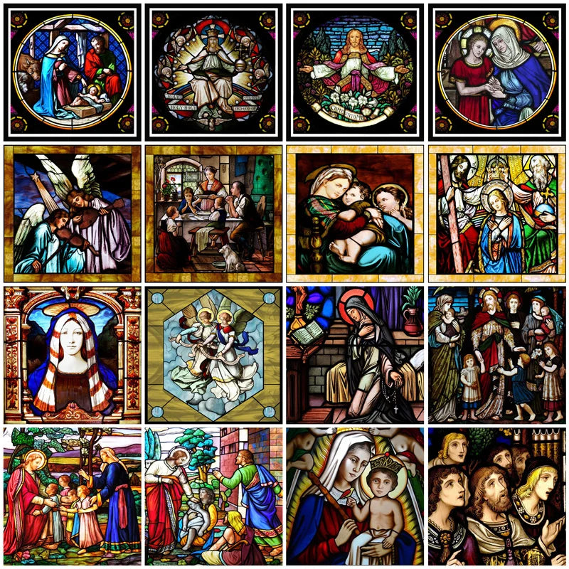 Custom Frosted Stained Glass Window Film, Static Cling ,Church Jesus Mary Angels Picture Stickers, Window Treatment, Home Decor