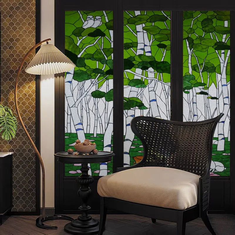 Custom Glass Window Film Static Cling,Stained Glass Films,Home Foil Stickers,Tree Pattern,Frosted For Bathroom Door,Home Decor