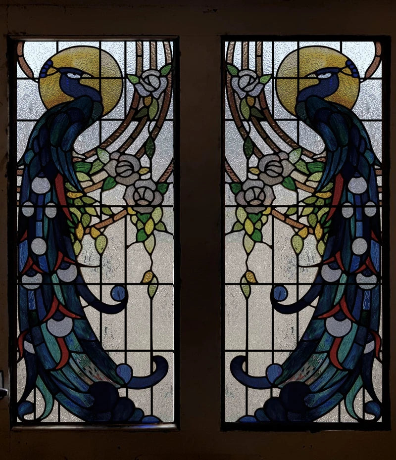 Custom Size 3D Matte Window Film, Stained Glass, Decorative UV Window Sticker, Privacy Frosted Static Cling, Home Decal,Peacock