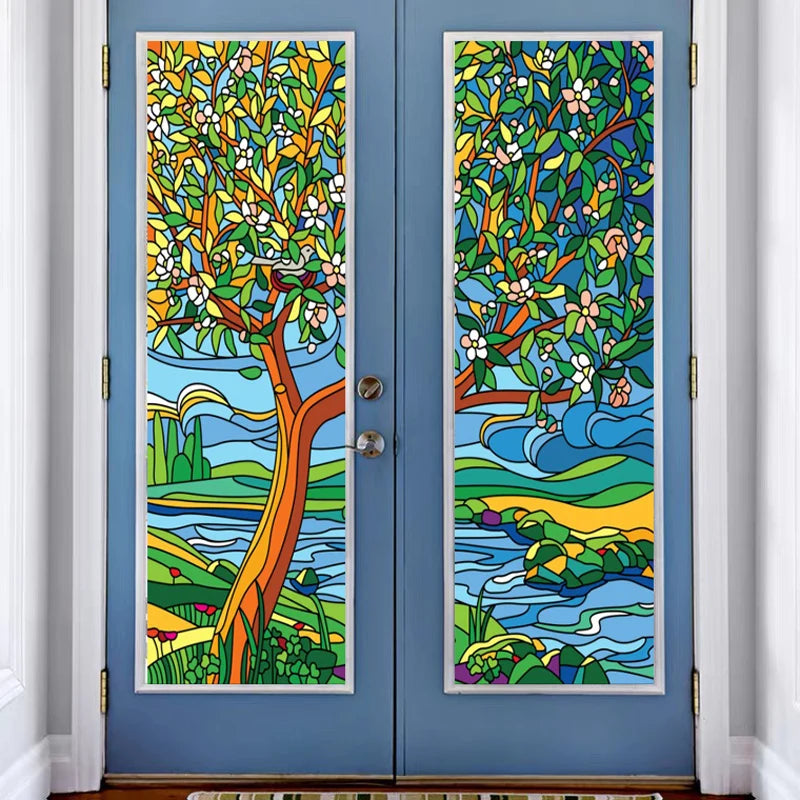 Custom size Glass Films,Stained Glass Stickers Static Cling,Frosted Privacy Print Flower,Tree,Rivers For Window Door Home Decor