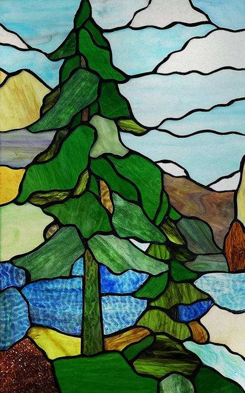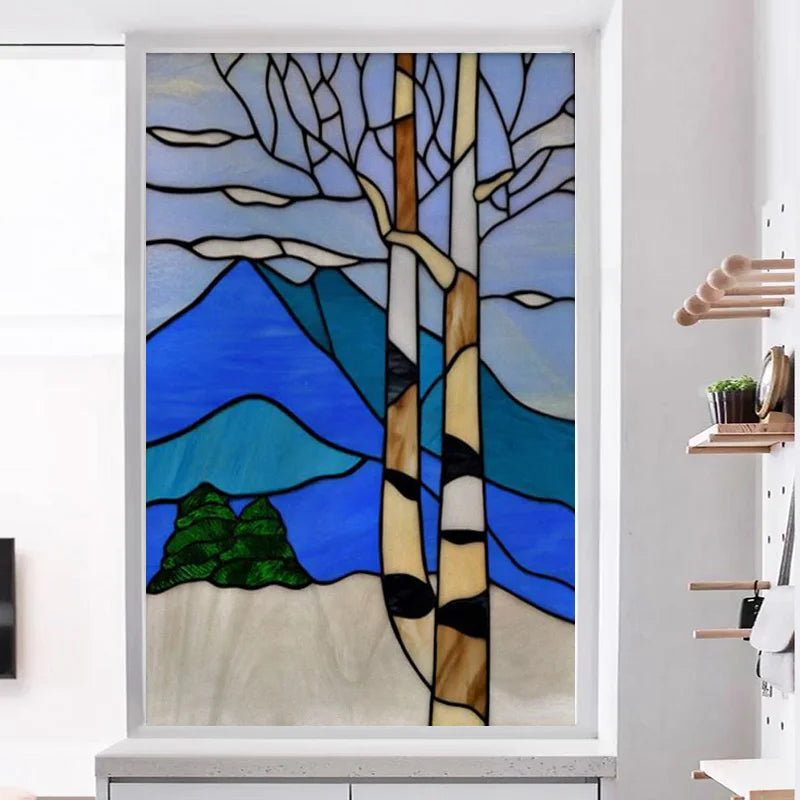 Custom Size Stained Glass Stickers,Static Cling,Frosted Privacy Print, Tree,Rivers for Window, Door, Home Decor