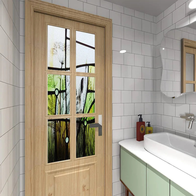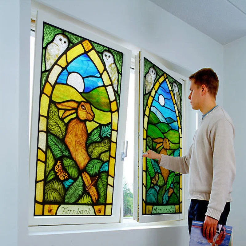 Custom Size Stained Glass Window Film Animal Pattern Rabbit Crow Bird Fox For Rectangular Shape Glass Office Home Decor