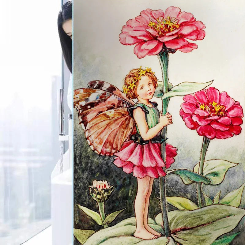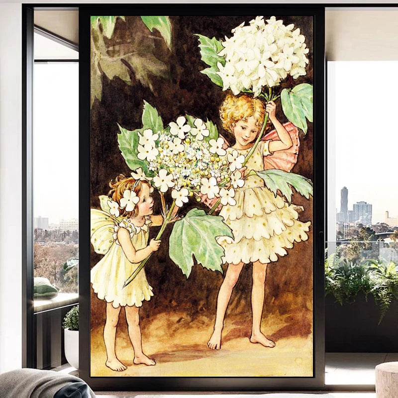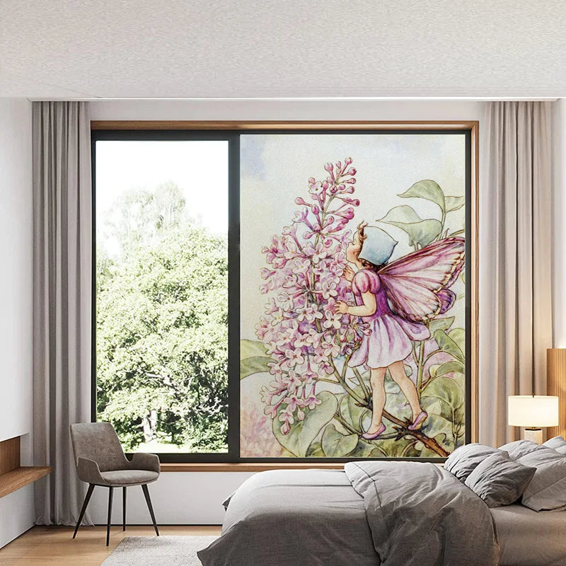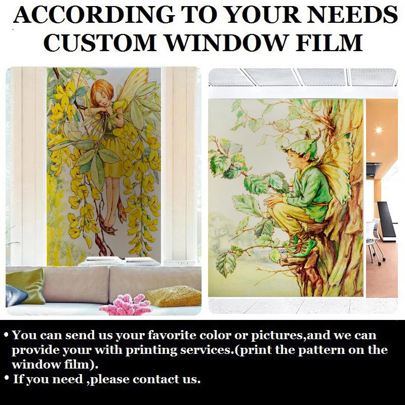 Custom Size Stained Glass Window Film, Flower Tree, Fairy Stickers, Static Cling, Kitchen, Bathroom, Bedroom, Door, Home Decor