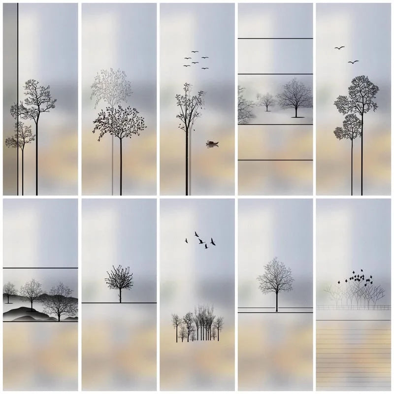 Custom Size Stained Glass Window Film,Frosted Privacy, Static Cling, Door Sticker,Kitchen and Bathroom, Tree Home Decor