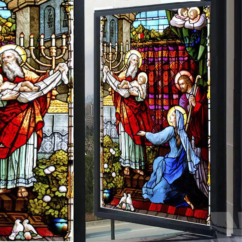 Custom size Stained Glass Window Film Jesus Virgin Mary,Home decor Frosted foil door stickers ,Church poster