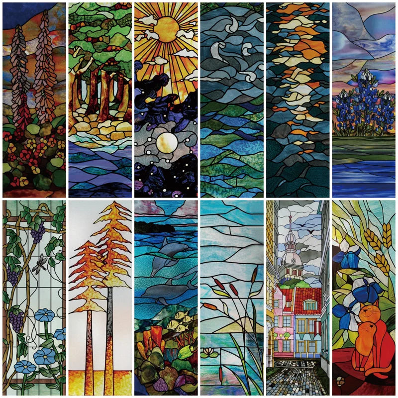 Custom Size Window Film, Stained Glass Films, Frosted Privacy, Retro Church Style, Colorful Door Sticker, Shower, Bathroom
