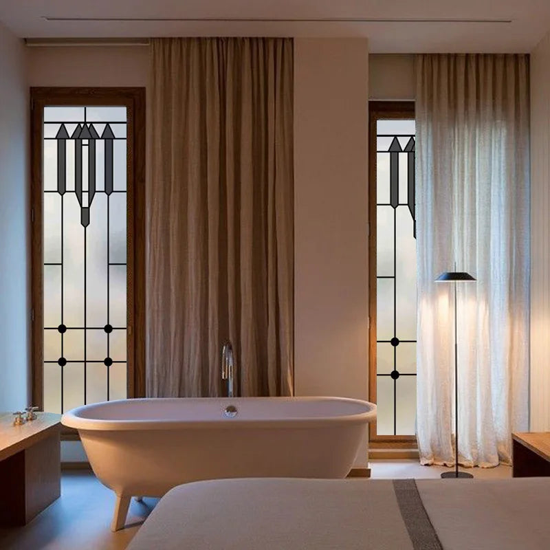 Custom Size Window Glass Films ,Privacy Window Stickers 3D Frosted Glass Film Prairie School Style Decorative Static Cling