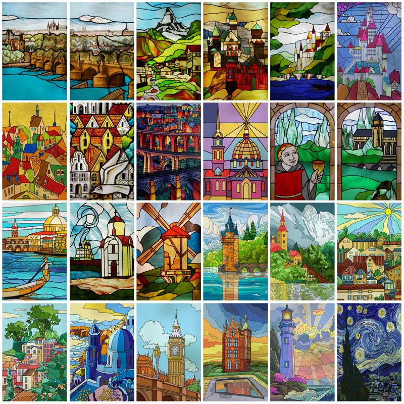Custom Stained Glass Films Window Film Frosted Sticker Castle For Kitchen Bathroom Door Church Poster Home Decor