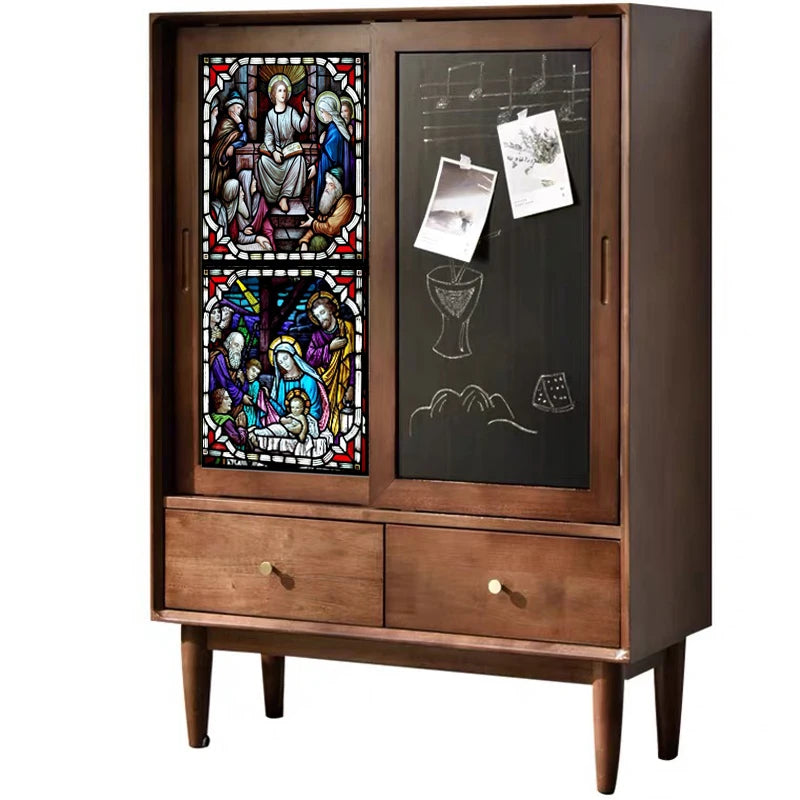 Custom Stained Glass Window Film,PVC Self-Adhesive Window Films,Retro Church Jesus, Home Decor Foil Stickers, Window Treatment