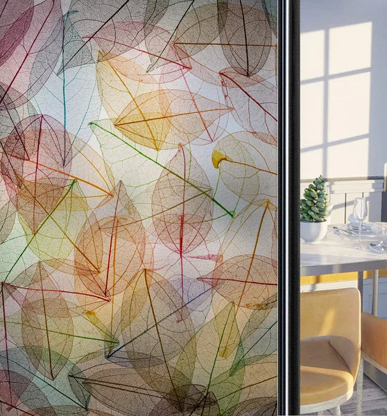 Customized Frosted Stained Glass Window Film, Art Deco Design Leaves,Static Cling, Remove Door Sticker,Home Decor