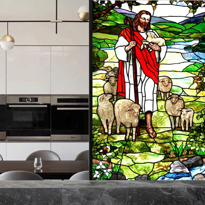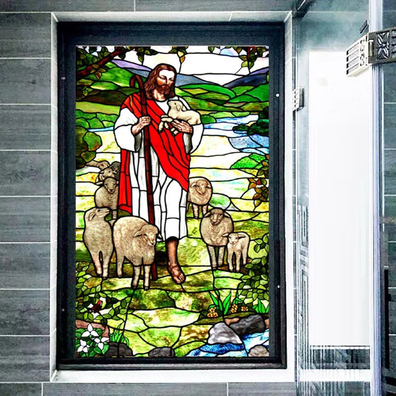 Decorative Self Adhesive/Static Cling Frosted Stained Continental Window Film Custom Size Jesus Christ 028