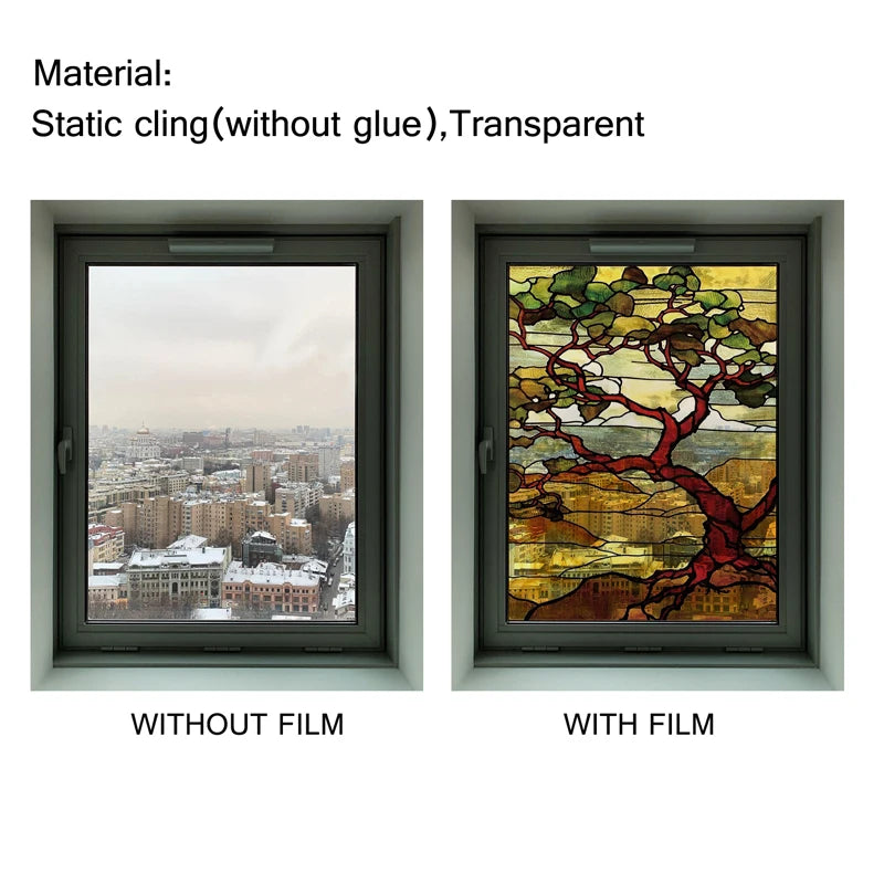 European Church Mosaic Art Glass Film Stained Window Opaque Sticker Self Adhesive/Static Cling Decor Privacy Do Custom Size Tree