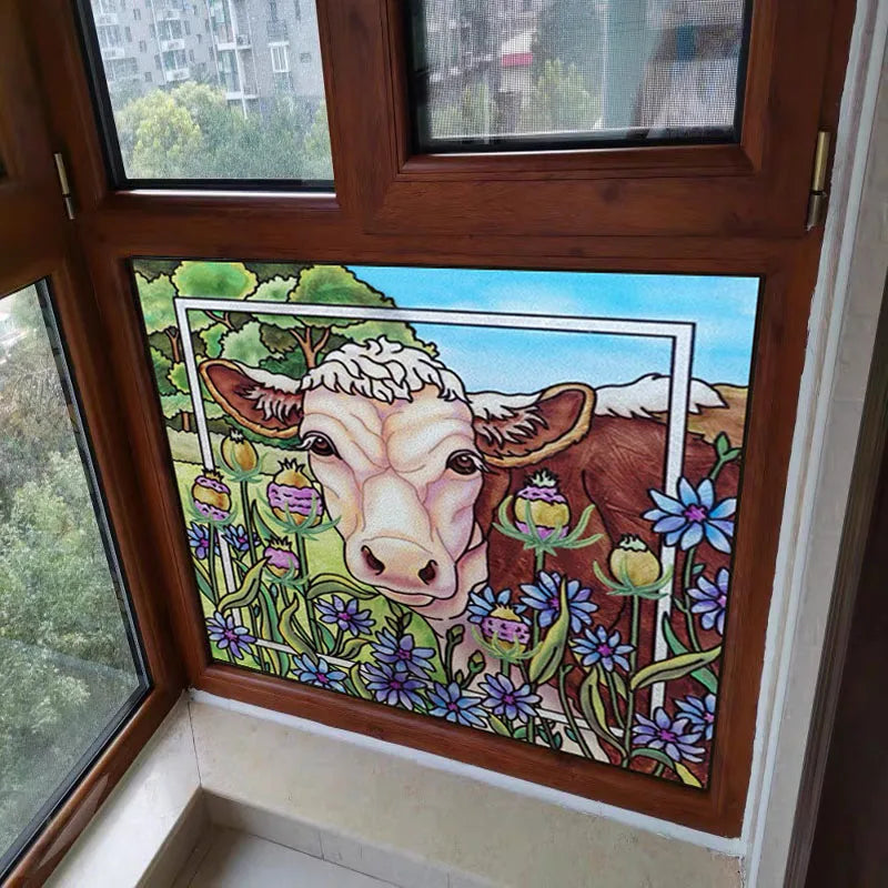 Frosted Stained Glass Film, Customized Art Deco Design, Color Static Cling Sticker,Home Decor Foil, Window Treatment