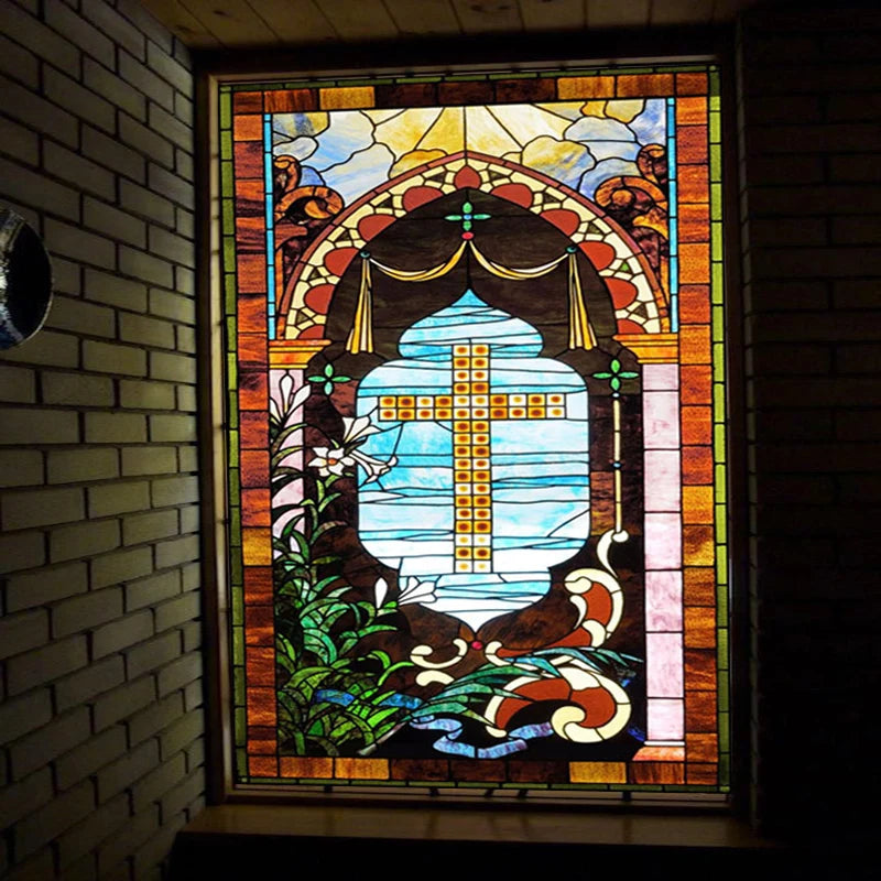 Frosted Stained Glass Window Film, Cross Dove Lily, Static Cling, Church, Home Decor, Bathroom, Kitchen, Door Sticker