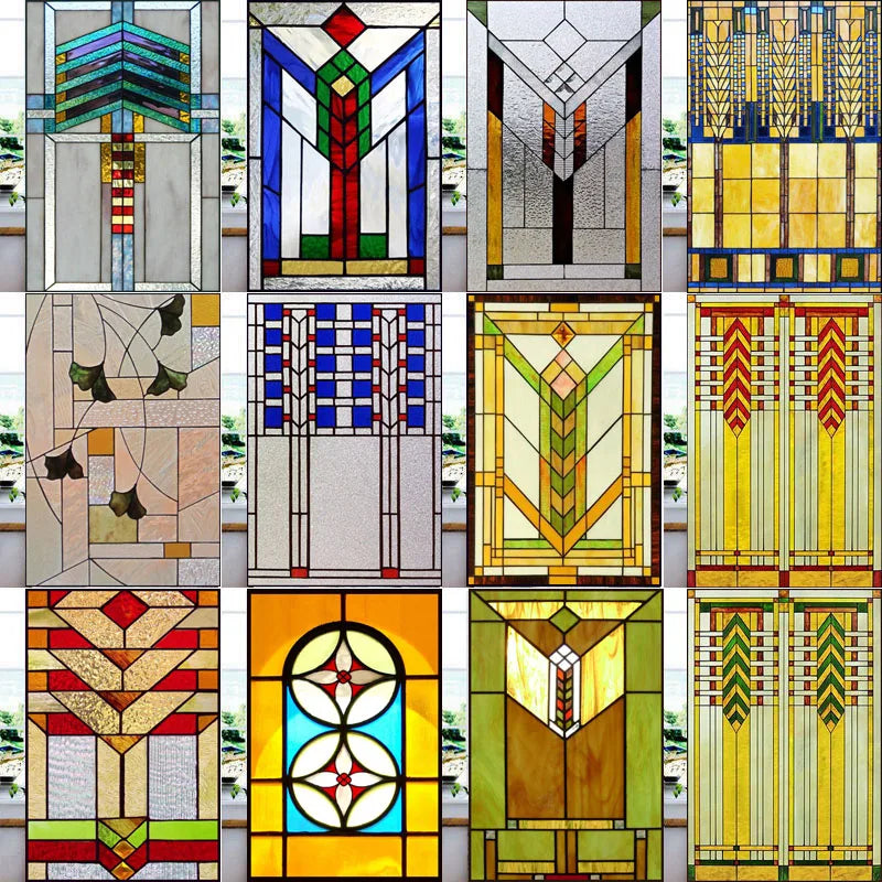 Frosted Stained Glass Window Film, Custom Size Privacy Static Cling, Prairie Style for Kitchen, Bathroom, Office, Skylight