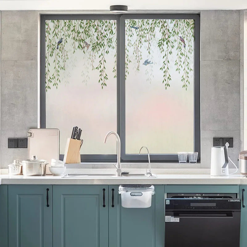 Frosted Stained Glass Window Film, Customized Decor Design, Leaf Static Cling Sticker,Home Decor Foil, Treatment