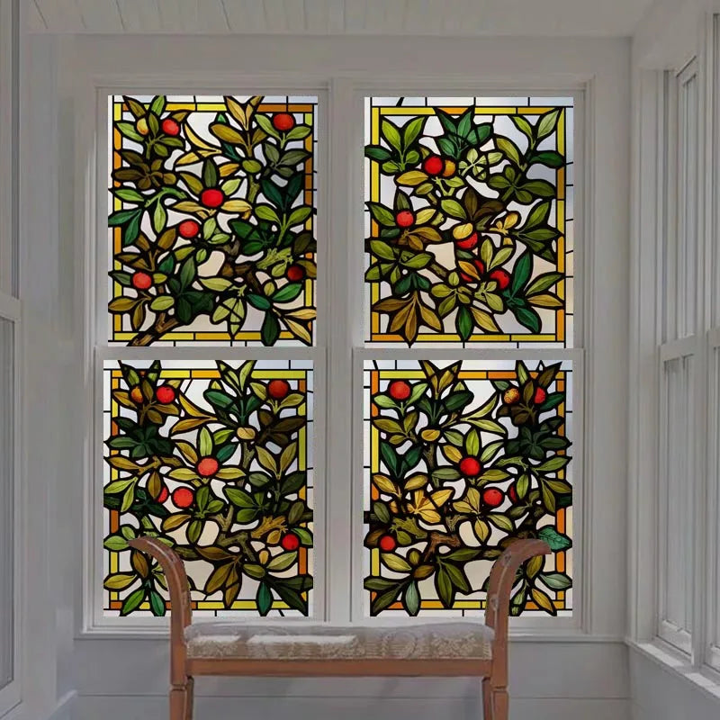 Frosted Stained Glass Window Film, Customized Decor Design, Red Bayberry Static Cling Sticker,Home Decor Foil, Treatment