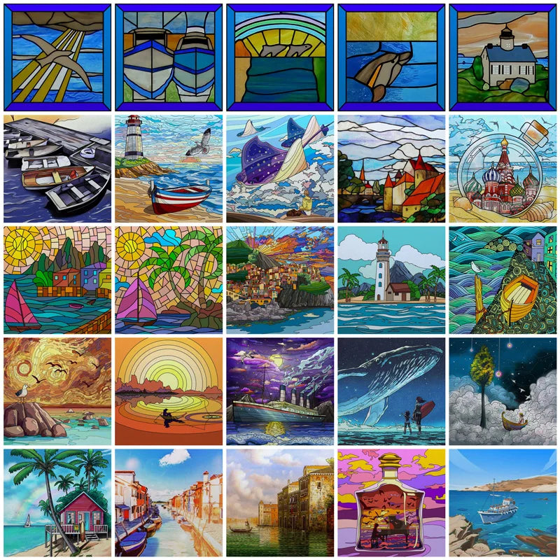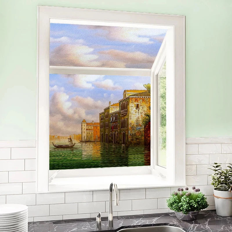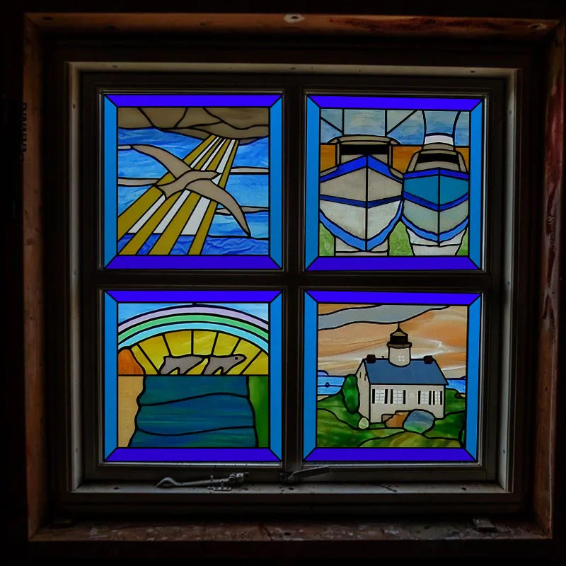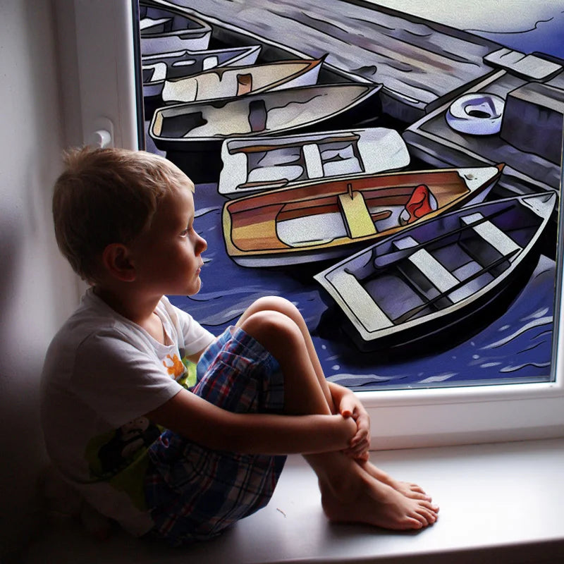 Frosted Stained Glass Window Film, Customized Ocean Boat Color, Static Cling Sticker,Home Decor Foil, Treatment