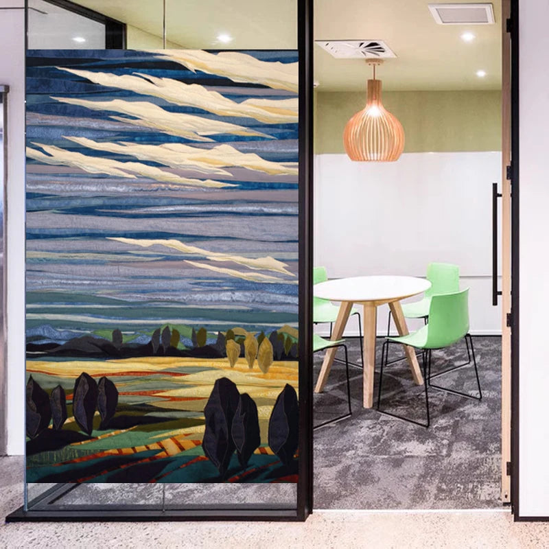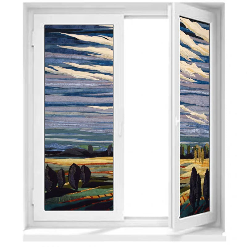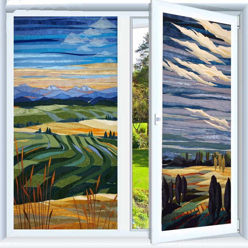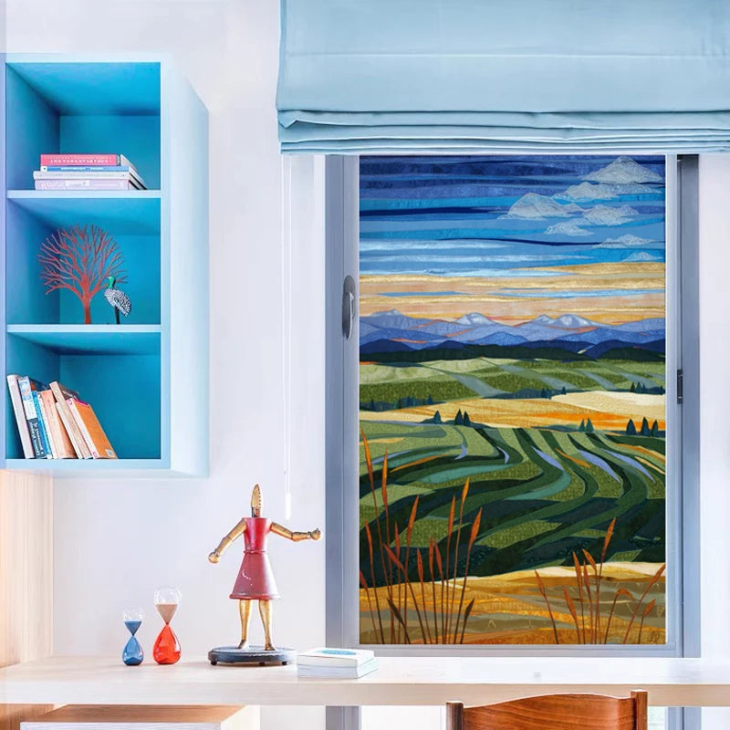 Glass Film Stained Window Stickers, Opaque Self Adhesive, Static Cling, Home Decor, Privacy, Terrace Scenery Poster, Custom Size