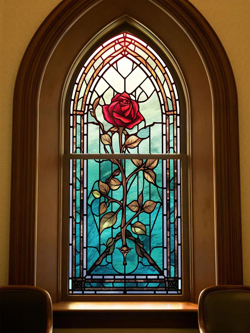 Rose Stained Glass Window Film, Frosted Window Film, ,Privacy,No Glue, Static Cling, Home Decorative