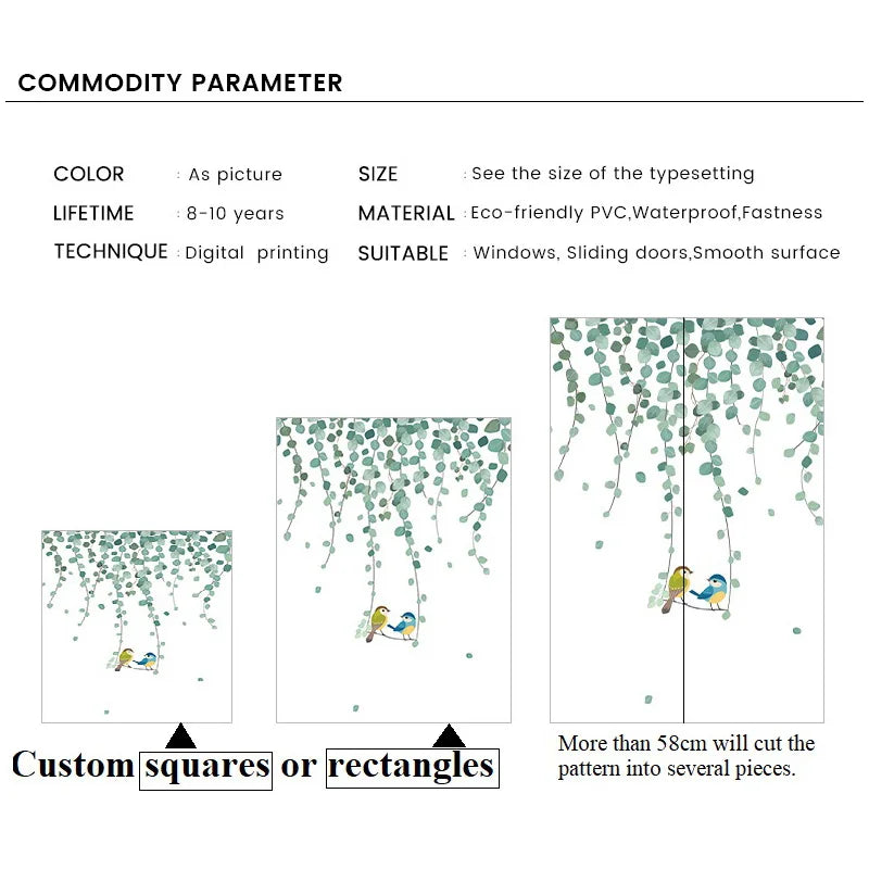Stained Glass Film Vine Leaves & Birds Frosted Sticker Home Decorative Film Modern Window Accessories BLT3850Custom Size
