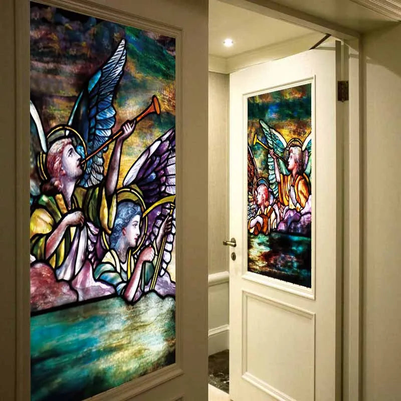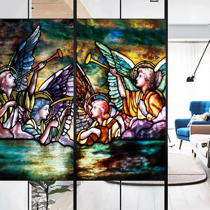 Stained Glass Films,Frosted Sticker,Self Adhesive/Static Cling Privacy Retro Church Home Decor Angel