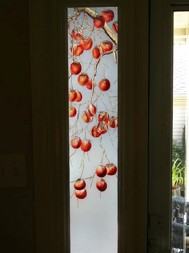 Stained Glass Films Static Cling Window Stickers Opaque Frosted Surface Bedroom Bathroom Decor Window Film Privacy Persimmon