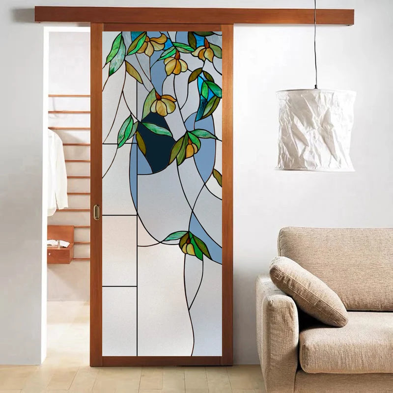 Stained Glass Vinyl Window Stickers Frosted Surface Bedroom Bathroom Decor Window Film Privacy Leaves Flower Custom Size