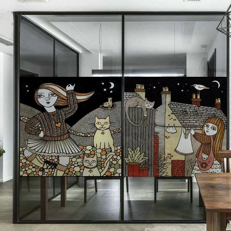 Stained Glass Window Film, Custom Size, Static Cling, Frosted,Cat, Bird, Rabbit Print, Door, Home Decor