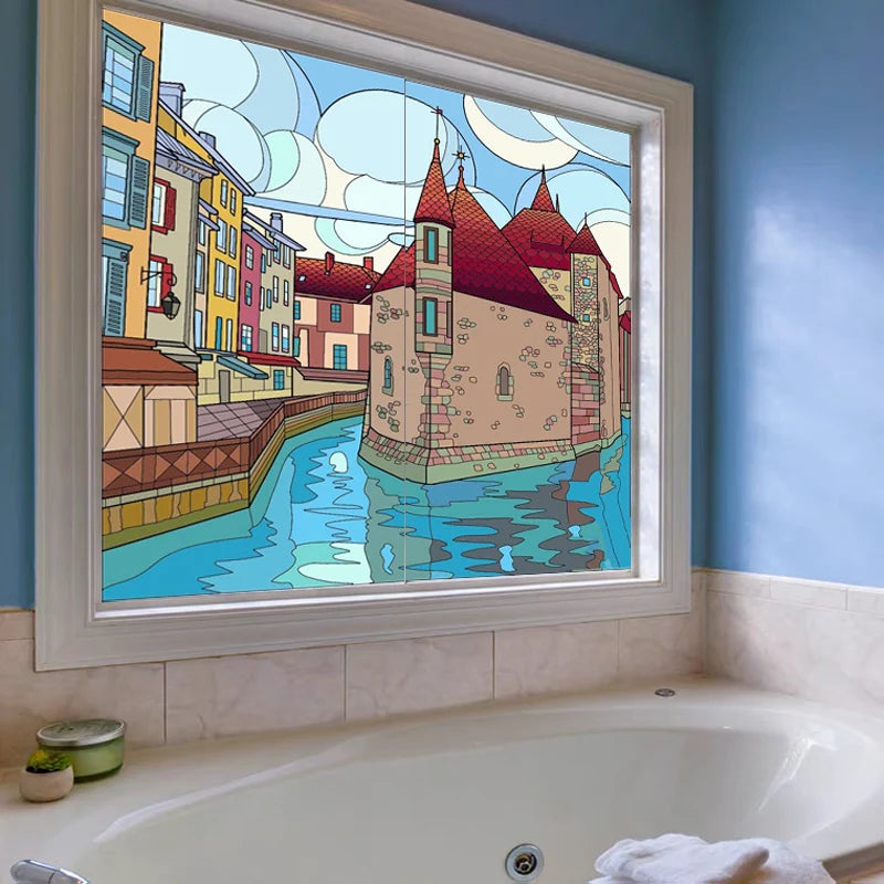 Stained Glass Window Film Frosted Glass Sticker Forest Customized Princess Prince Fairytale Castle For Kids Room Door Home Decor