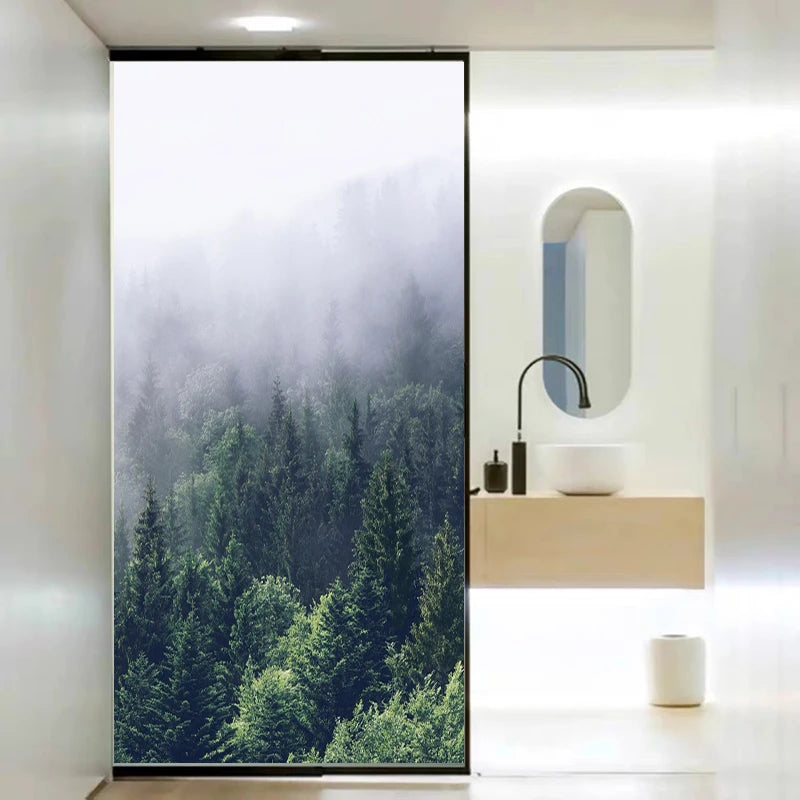 Stained Glass Wndow film Frosted Glass Sticker Forest Self adhesive or Static Cling Custom Size 50x90cm/pc