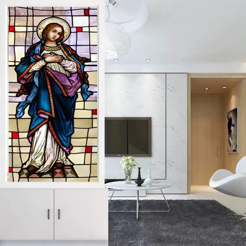 Stained Privacy Window Film Frosted Window Sticker Vinyl Glass Films For Home Office Church Madonna Mary Picture