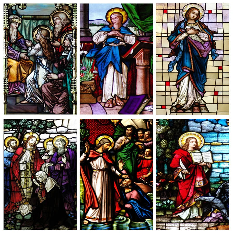 Window Film Frosted Stained Glass Films,Customized Jesus Virgin Mary Church Picture,Home Decor Static Cling Door Stickers