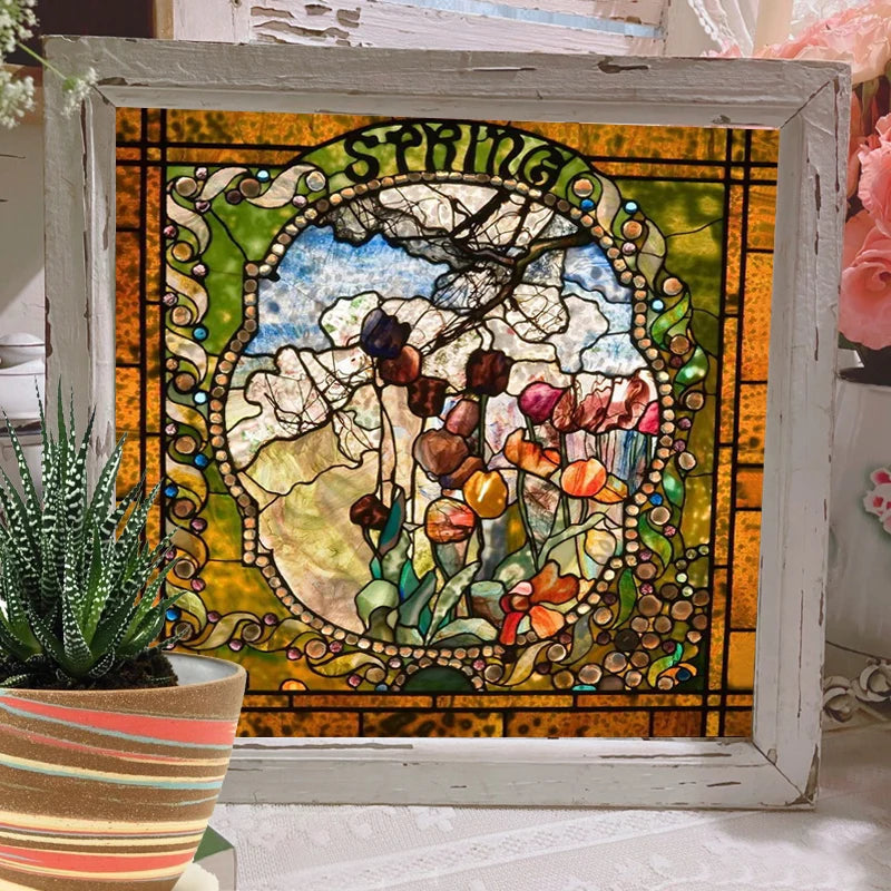 Window Film Stained Glass Films Frosted Privacy Static Cling ,Vintage 4 Seasons Spring, Summer,Autumn,Winter Pictuer for Home