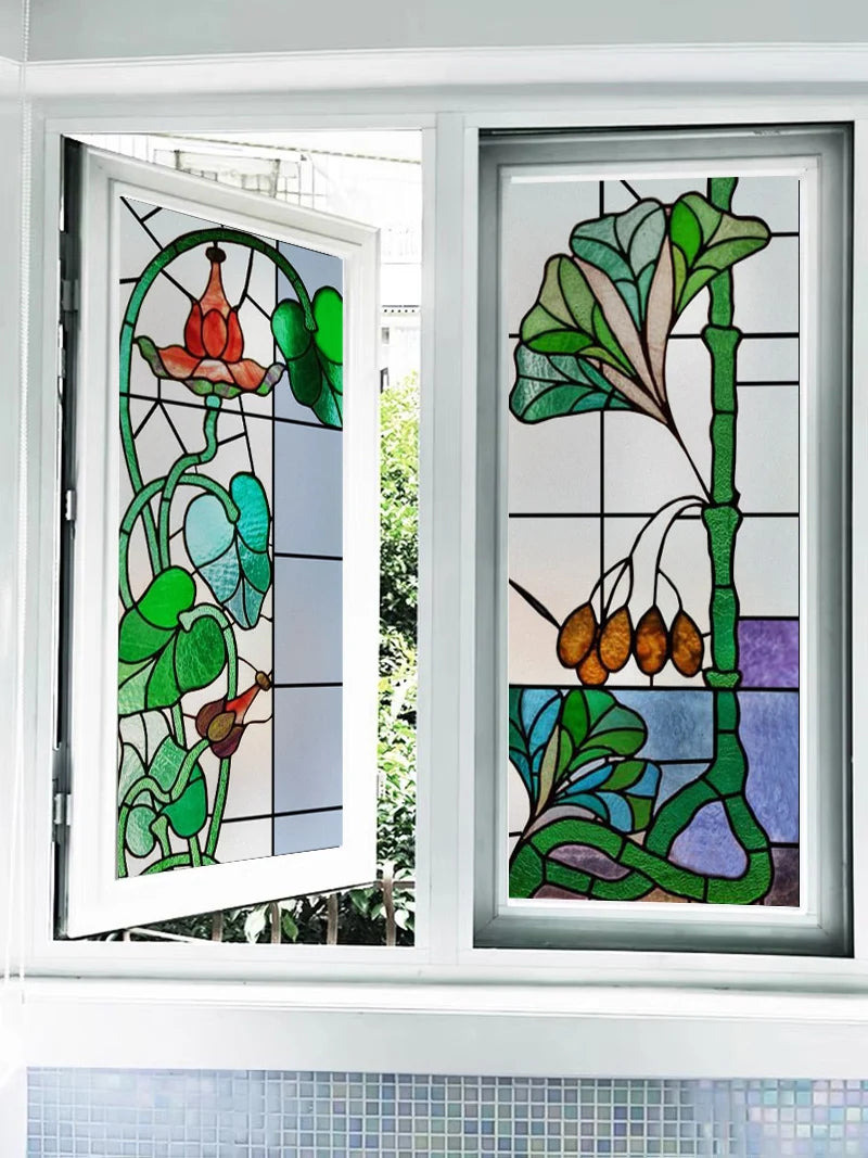 Window Film Stained Glass Films Frosted Static Cling Privacy Glass Sticker Home Decor Retro Flower custom size