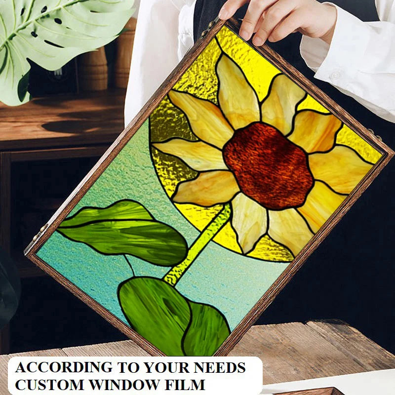 Window Film Stained Glass Stickers,Custom size Static Cling Sunflower Privacy Films Door Sticker Kitchen Office Home Decor
