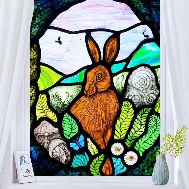 Window Film Stained Glass Stickers Static Cling,Frosted Privacy Custom size,Print Cat,Tiger,Deer,Bear For Window Door Home Dec